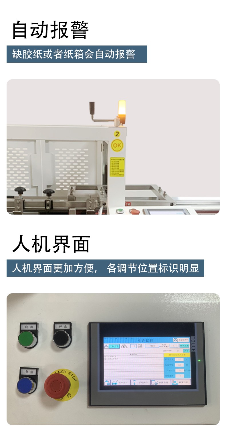 高效自動化:可大大提高生產效率,減少人工操作,節省時間和人力成本。例如,高速自動開箱封底機每小時可處理幾百甚至上千個紙箱 。 操作精準:準確的感應和定位系統能夠確保箱子的準確開啟和封閉,保證每個紙箱的形狀和封底質量都符合標準,避免漏貼和錯位等問題 。 智能調節:智能控制系統可根據不同箱子尺寸進行自動調節,適用范圍廣,能處理各種規格的紙箱 。 安全可靠:避免了人工開箱可能帶來的安全風險,如刀具劃傷等,同時設備配備了多重安全保護裝置,保障操作人員和設備的安全 。 易于操作維護:設計人性化,操作簡單方便,非專業