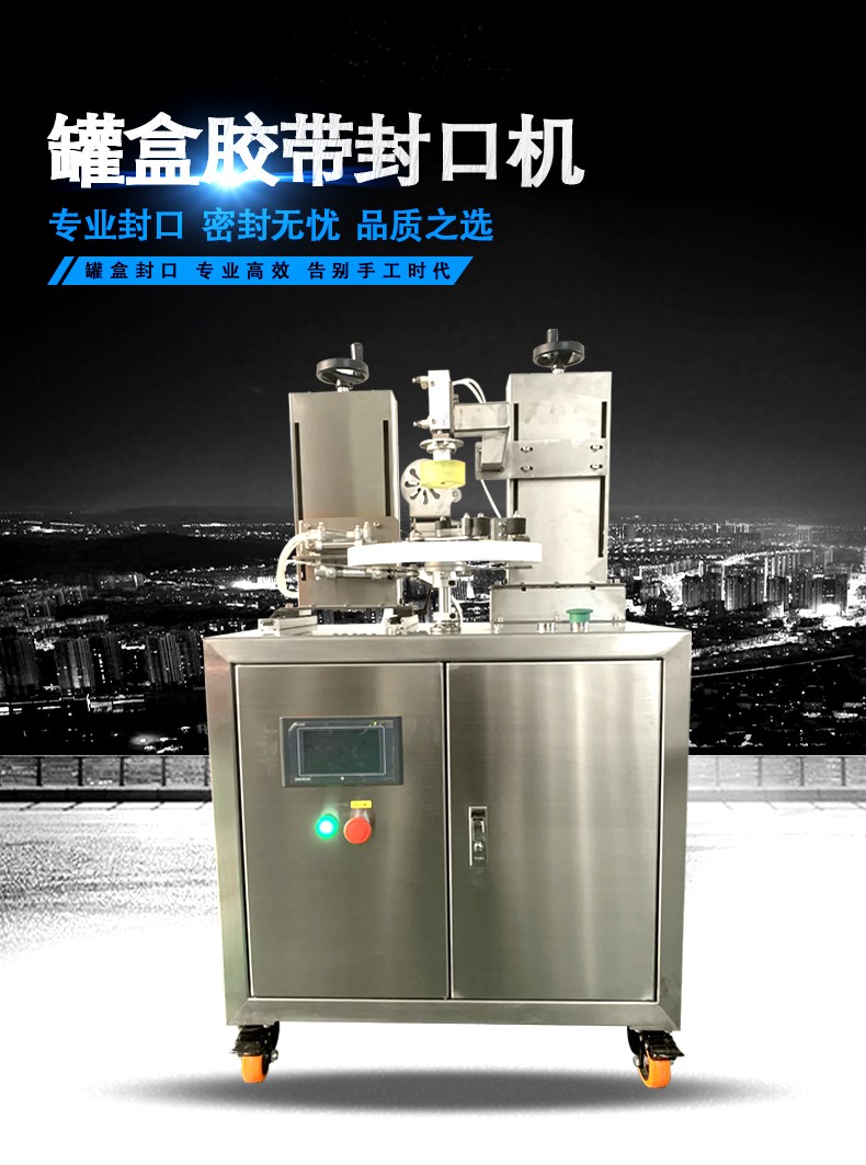 • 膠帶貼合:接著,壓帶輪開始動作,將膠帶平整地貼合在罐盒的開口邊緣。壓帶輪的壓力是可以調(diào)節(jié)的,操作人員可以根據(jù)罐盒的材質(zhì)(如金屬罐、塑料罐)和膠帶的類型(如普通膠帶、防偽膠帶)來調(diào)整合適的壓力,以確保膠帶能夠緊密地貼合在罐盒上,而不會出現(xiàn)褶皺或縫隙。
