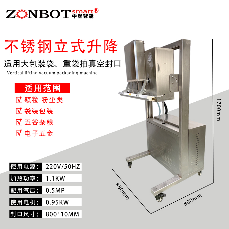 它主要由機身、真空系統、升降系統、封口系統等部分組成。機身一般采用優質不銹鋼材質,這種材質不僅堅固耐用,而且便于清潔,符合食品包裝等行業的衛生要求。 其外形是立式的,相比于臥式包裝機,它在空間占用上更為靈活,不需要較大的水平放置空間,適合在場地有限的車間或小型生產場所使用。 升降系統 這是該包裝機的關鍵部分之一。它通過精密的機械裝置,如電動推桿或氣缸等部件來實現升降動作。在包裝過程中,能夠根據包裝物的高度靈活調整真空室的高度,使得不同高度的產品都能被準確地放入真空室內進行包裝。例如,對于一些較高的電子產品