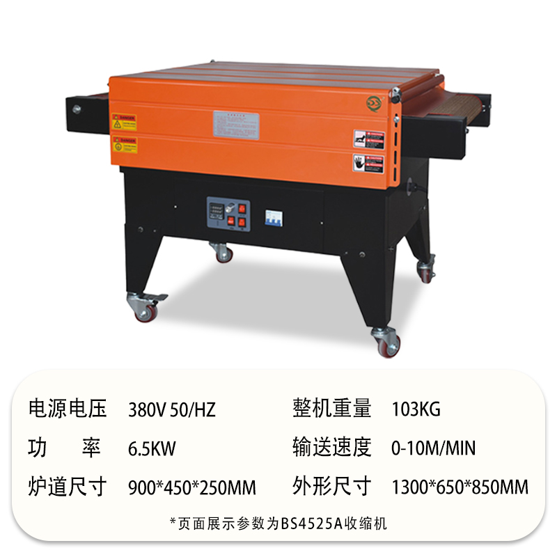 • 包括輸送帶和驅動電機等部分。輸送帶用于將產品平穩地輸送通過熱空氣噴射區域,其速度可以調節。這樣可以根據不同的包裝速度要求和產品尺寸來控制產品在機器中的停留時間。例如,對于較小的產品,如糖果,可以加快輸送帶速度,提高包裝效率;而對于較大的產品,如家電產品的配件,輸送帶速度可以適當減慢,以保證薄膜有足夠的時間進行收縮。