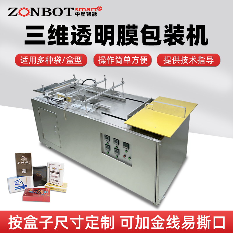 半自動三維透明膜包裝機(又稱半自動透明膜裹包機、半自動煙包機)是醫藥、食品、日化等行業常用的包裝設備,核心功能是通過BOPP 透明膜(或含鋁箔的復合膜) 對產品進行三維立體裹包,形成類似香煙盒外層的緊致、透明(或半透明)包裝,兼具防塵、防潮、防偽及提升產品外觀檔次的作用。其 “半自動” 特性主要體現在需人工輔助上料,后續裹膜、封切、折邊等核心工序自動完成。 一、核心工作原理 設備通過 “膜料供送→人工上料定位→膜料裹覆→熱封切邊→折邊定型→成品輸出” 的流程,實現產品的三維膜包裝,具體步驟如下: 膜料準備