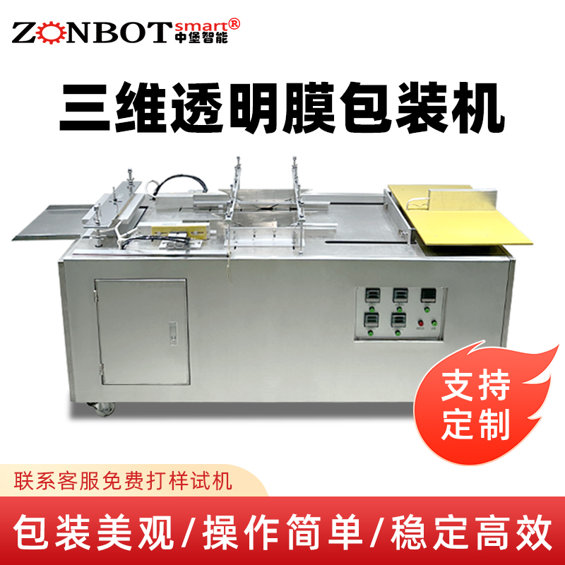 設備通過 “膜料預處理→人工上料定位→三維裹膜成型→熱封切邊→折邊定型→成品輸出” 的流程,實現產品的立體包裝,具體步驟拆解如下: