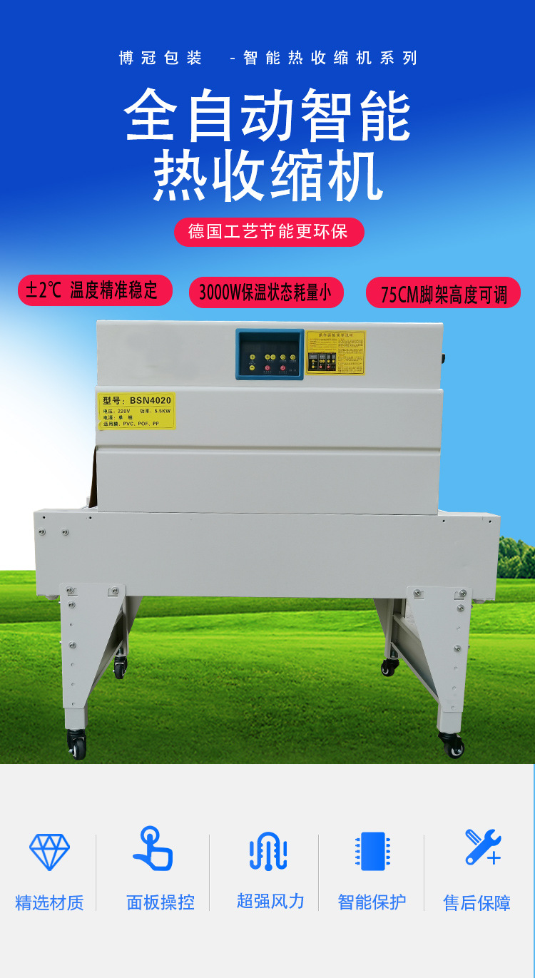 熱收縮機采用的進口材料,保證了產品的質量和性能,使您的產品在收縮包裝后,更耐用、更美觀,更具市場競爭力。