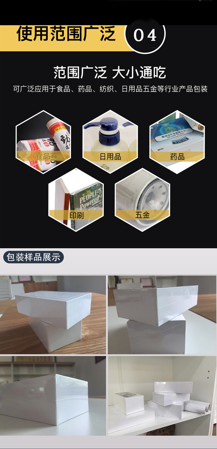 封切機是全自動無人化操作的包裝機,廣泛用于批量生產(chǎn)包裝的流水作業(yè),工作效率高,自動送膜打孔,自動套膜封切,自動卷取廢料;只需手動調(diào)節(jié)導(dǎo)膜系統(tǒng)以及手動調(diào)節(jié)進料輸送平臺,適用不同寬度及高度的產(chǎn)品??膳c自動化包裝流水線配套使用